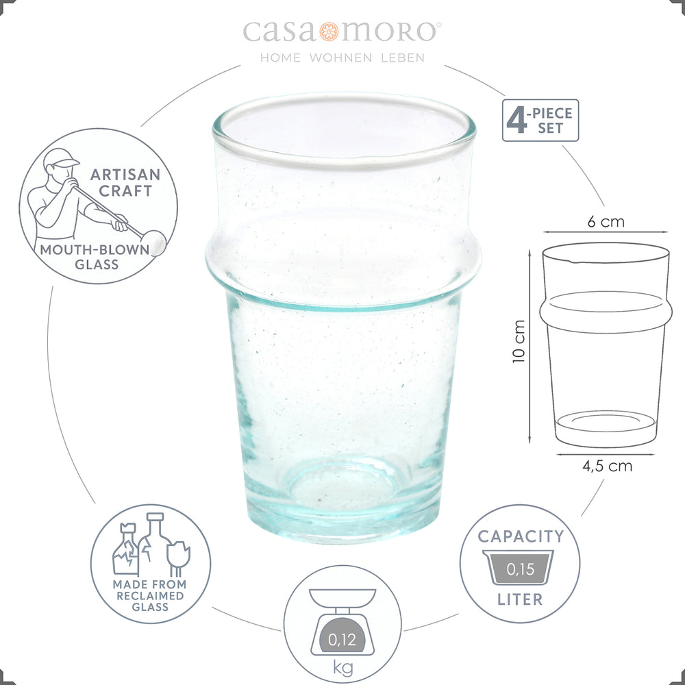 La selección se completa con vasos para latte macchiato, vasos para capuchino, espresso y té para bebidas calientes, vasos para postres y vasos para combinados en un práctico juego de 4, así como elegantes juegos de vasos de cóctel para ocasiones especiales. A esto se suman jarras de vidrio, jarras para zumos y jarras para agua fabricadas con vidrio reciclado, todas ellas sopladas a mano, hechas a mano y con mucho carácter.