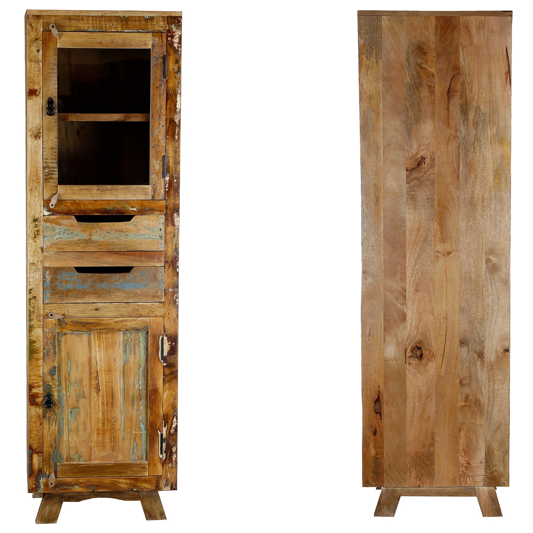 Hecho de madera de mango recuperada, este gabinete está hecho de material que ya ha vivido: recuperado de árboles caídos, barcos y vigas viejas, pisos y vigas de soporte de edificios demolidos. Es precisamente este origen el que confiere a la madera maciza sus matices, sus finas trazas y el cálido juego de colores que hacen tan creíble el carácter vintage.