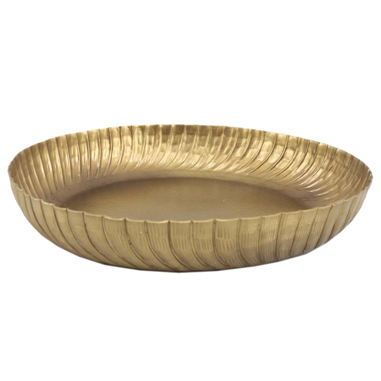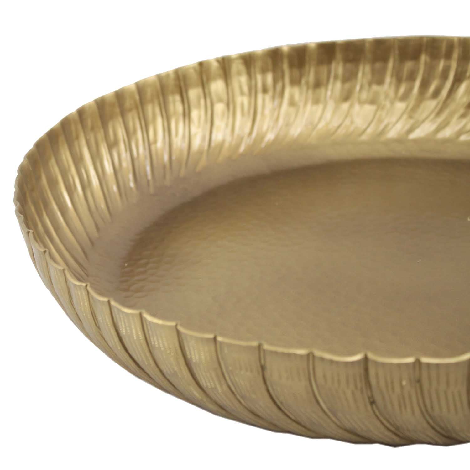 La bandeja de aluminio«Loubna» está fabricada a mano siguiendo la auténtica tradición oriental y acabada con un discreto aspecto dorado envejecido. La base de la bandeja dorada tiene un acabado martillado. El borde alto en forma de onda es muy llamativo.