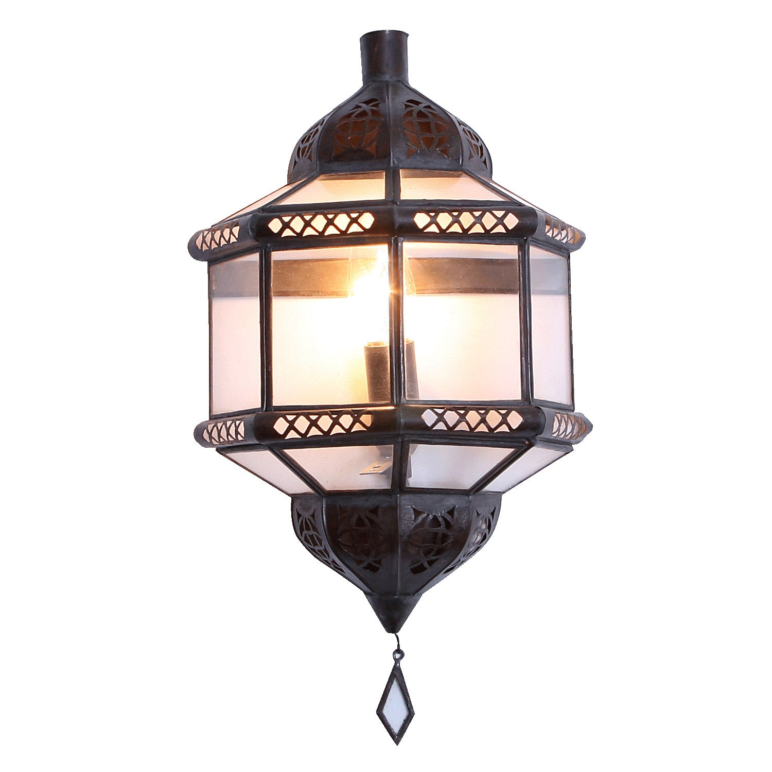 Una lámpara de pared marroquí de cristal para crear un ambiente acogedor. Está fabricada a mano en hierro de color óxido noble y refinada con cristal en relieve. Solo apta para iluminación eléctrica.
