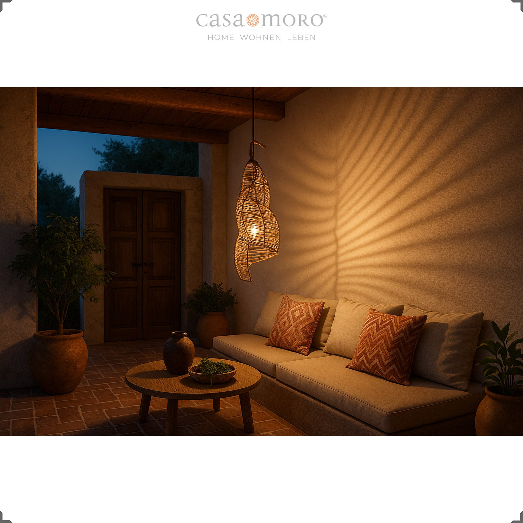 Lampenschirm aus Rattan – filigrane Hängelampe mit warmem Licht