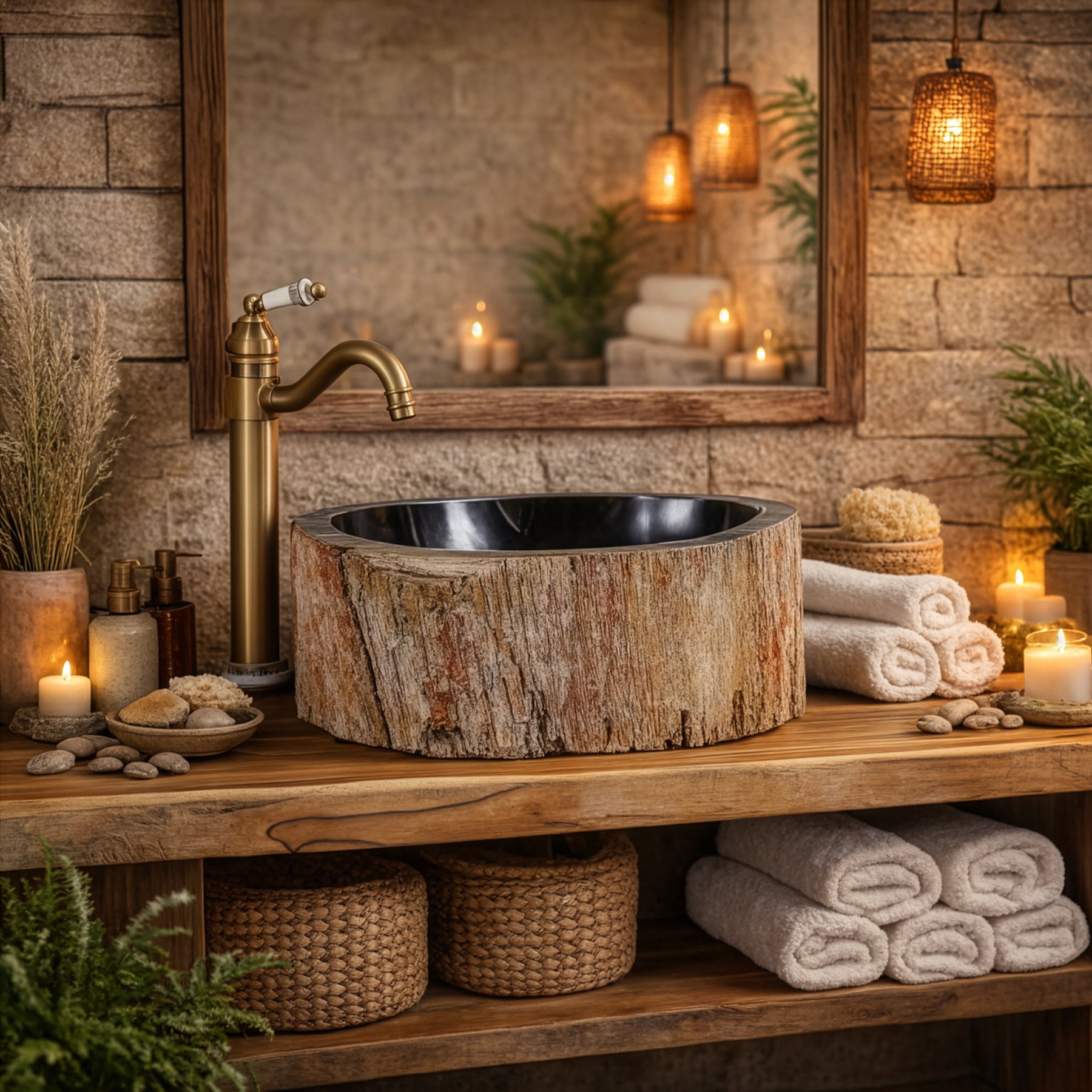 un Lavabo hecho de piedra y madera petrificada: cada uno es naturalmente único