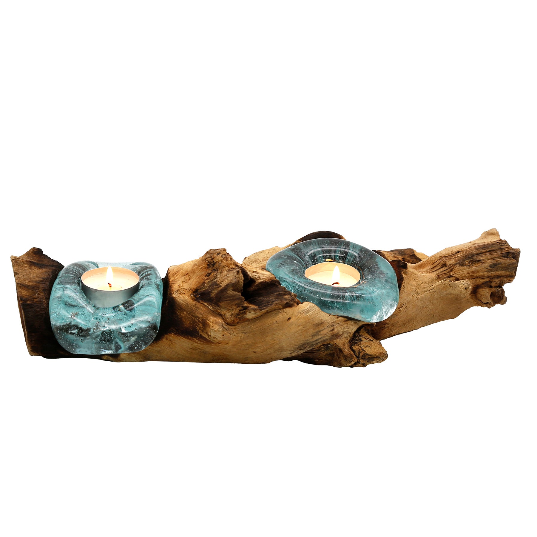 Teelichthalter aus Wurzelholz mit Glaseinsätze