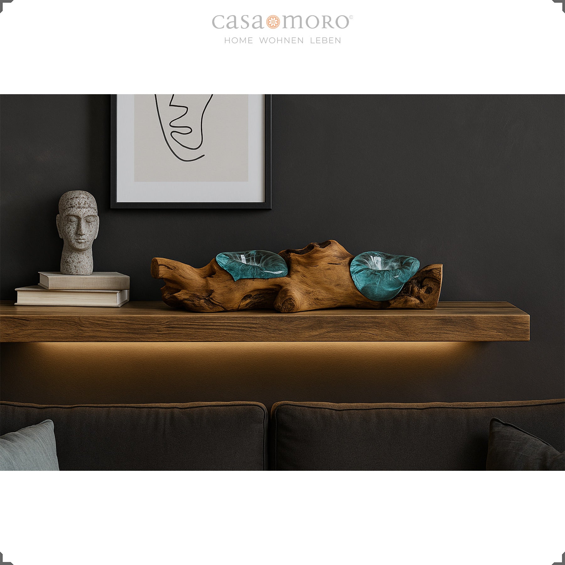 • Diseño: cuenco de madera orgánico, ideal como decoración alargada para mesas y aparadores