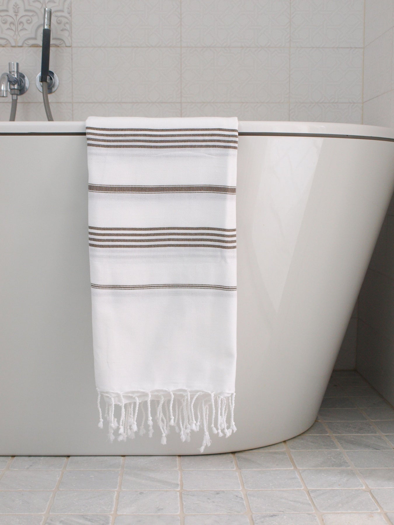 Las bonitas toallas de hammam, con rayas y diseño atemporal, están fabricadas en algodón puro y son de muy buena calidad, por lo que absorben muy bien la humedad.